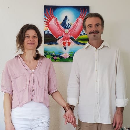 Linda est passeuse d’âme et magnétiseuse. Elle a été initiée par son père, Charly dit le Cep, magnétiseur reconnu dans le Valais et au-delà. Simon est guérisseur de l’âme et artiste peintre intuitif.